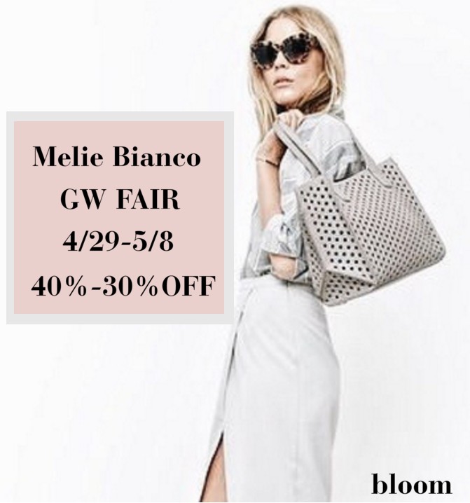 明日4/29から始まるGW中、Melie Biancoのバッグ達をスペシャル価格でご提供します★